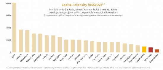 - Previous Copperstone project investments of +US $25 million in underground mine development (over 4,000m and two underground access portals) as well as other site infrastructure facilitating a relatively rapid construction schedule that is currently anticipated by Minera Alamos at approximately 12 months from the date a construction decision is made.